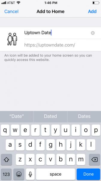 ☛ 3. Third screen shot: Give your fav icon a name like Uptown Date and click on Done or Add.